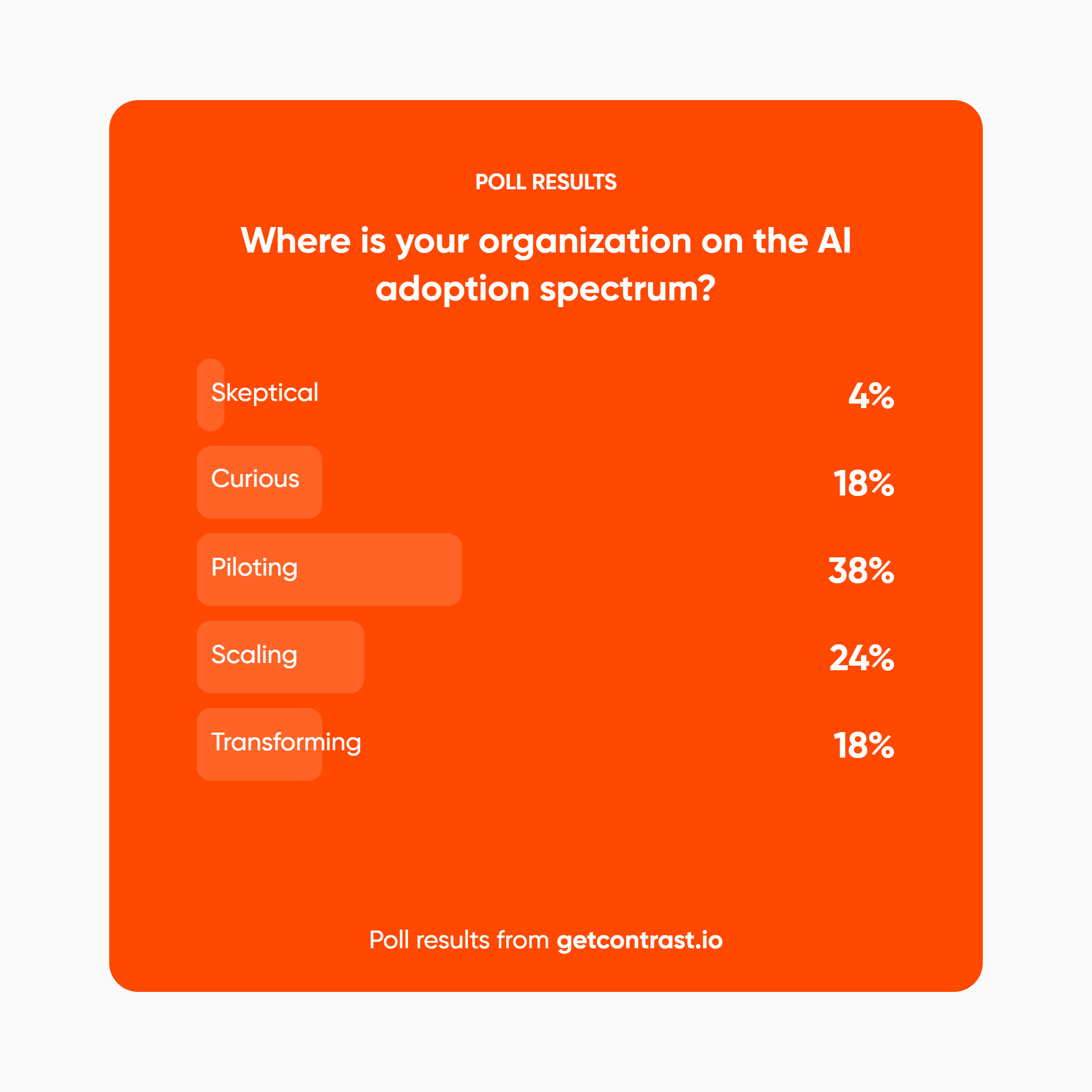 El 38% de las organizaciones están probando activamente iniciativas de IA y otro 24% ya está expandiendo las implementaciones. Sin embargo, la distancia entre experimentación y transformación sigue siendo amplia. La diferencia radica en los líderes que trataron la unificación de datos como un principio no negociable, que se centraron en flujos de trabajo concretos en lugar de aplicar la IA a problemas demasiado amplios y que midieron el impacto en el negocio en vez de métricas de adopción sin valor real.